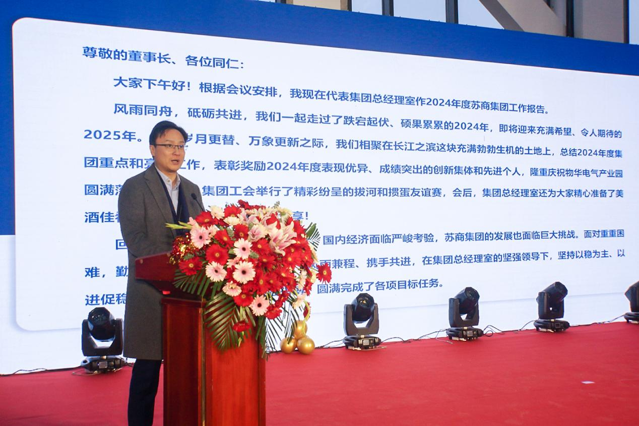 2024年12月31日,南京蘇商集團(tuán)隆重舉行“淵渟澤匯 囊橐充盈”物華電氣產(chǎn)業(yè)園圓滿落成慶?;顒?dòng),集團(tuán)本部全體員工和裝備制造事業(yè)部、商業(yè)管理事業(yè)部高管及員工代表150余人參加活動(dòng)。慶?;顒?dòng)從下午14:00開始,一直延續(xù)到晚上20:30,熱烈、喜慶、溫馨、和諧。