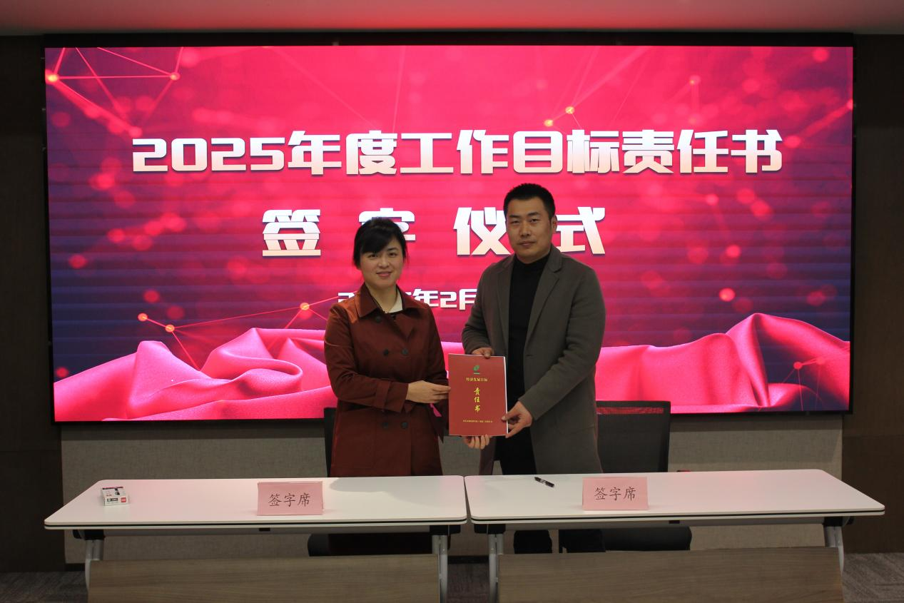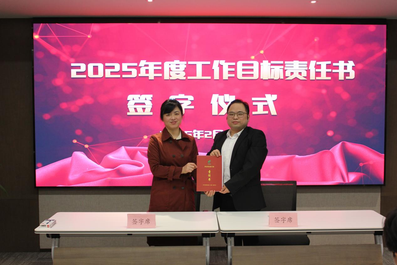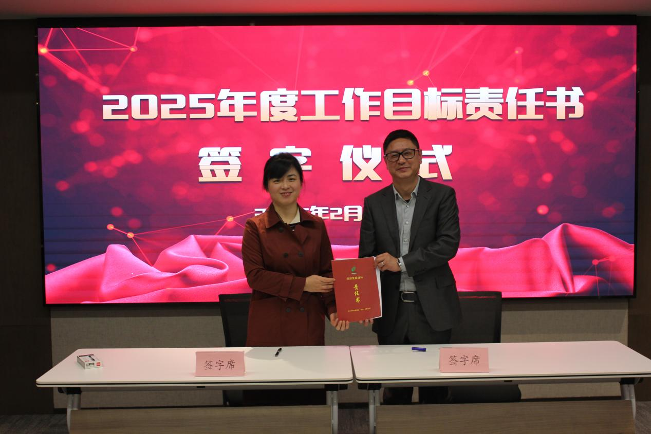 ↑副總經(jīng)理?xiàng)钊A女士同投資運(yùn)營(yíng)事業(yè)部有關(guān)責(zé)任人簽訂工作目標(biāo)責(zé)任書
